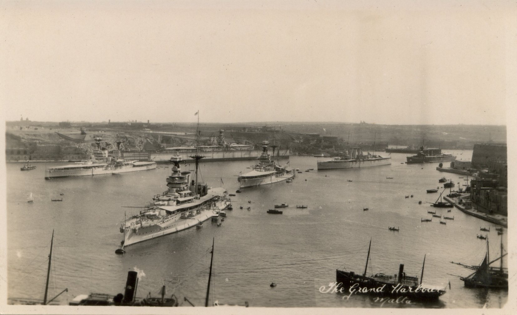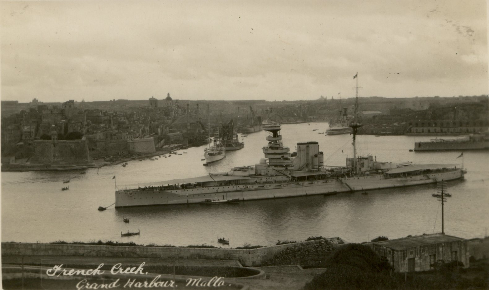 Three views of Corfu, the Kaiser's Palace seems to have been a popular visit. The bottom right picture is the cemetery of the Battle of Doiran in Greece (identified thanks to Theodoros Metallinos). The fleet left Corfu on 30th October and arrived at Malta on the 31st. Whilst there "London" carried out a self refit. See the description in Bow Bells pages 108-110.