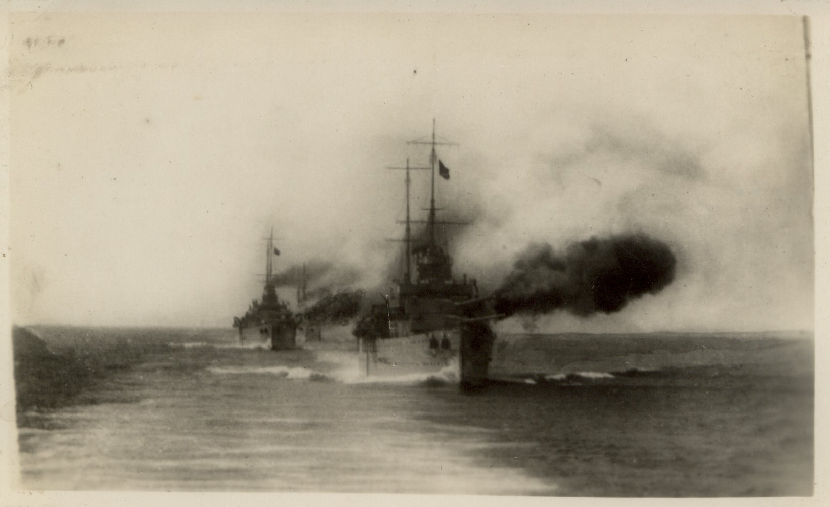 Drawing by a friend of the First Cruiser Squadron, London, Sussex, Shropshire, and Devonshire, at sea, 1930. |