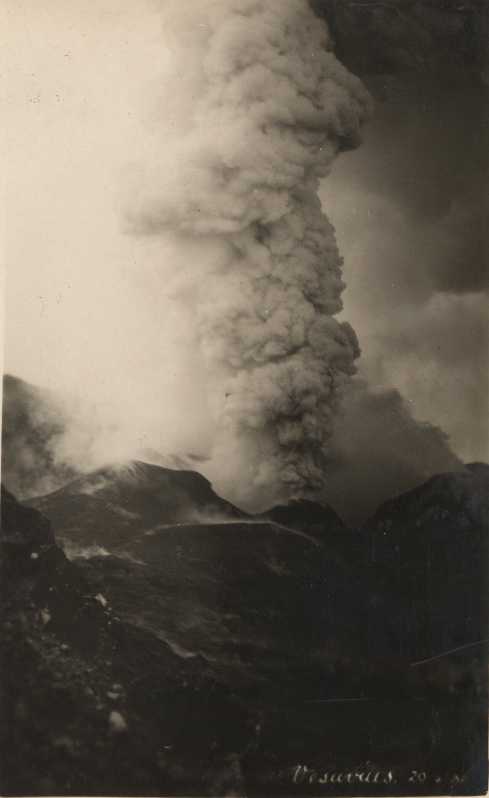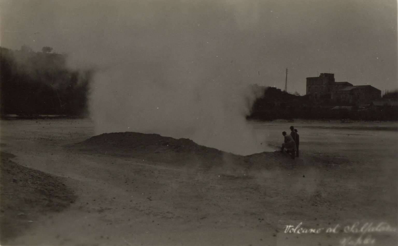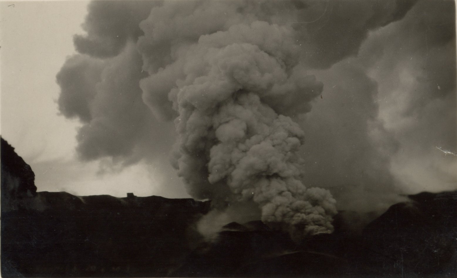 The top two pictures are from the Solfatara volcano. Solfatara is a shallow volcanic crater at Pozzuoli, near Naples and is part of the Campi Flegrei volcanic area. The name comes from the Latin, Sulpha terra, "land of sulphur". It was formed around 4000 years ago and last erupted in 1198 with what was probably a phreatic eruption - an explosive steam-driven eruption caused when groundwater interacted with magma. The crater floor is a popular tourist attraction, as it has many fumaroles and mud pools. The area is well known for its bradyseism. The bottom two are of Vesuvius, taken on 20th April 1930.
