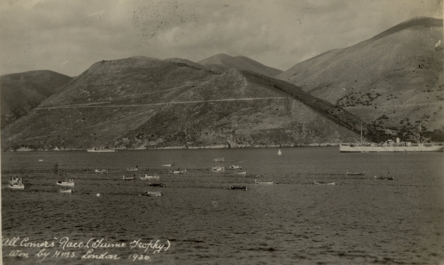 From Nauplia the fleet visited Skiathos, Problaka Bay and then Argostoli, where the regatta was held. A blow by blow description of this is given in Bow Bells pages 278-288. The bottom right picture is of the winning Royal Marines Cutter Crew. Dad, Alfred James Morgan, is the second from the left, back row.