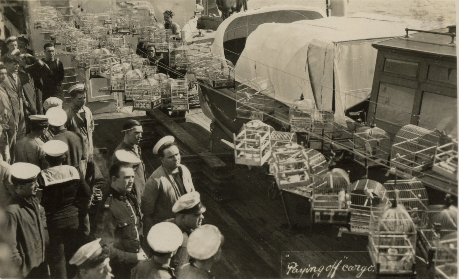 These pictures were taken as the ship left Malta for the last time that commission, on 9th March 1931. The paying off cargo, in this case consists of cages of canaries. One of these belonged to Dad. The bird was named Mac and he lived until 1941. He escaped from his cage during an air raid, returned a couple of days later and then died, possibly of fright and exhaustion.